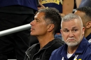 湖人总裁兼总经理佩林卡现场观战NCAA决赛,给母校密歇根加油。