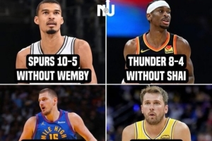 各MVP候选人缺席时球队战绩:文班10-5 亚历山大8-4 东契奇6-6