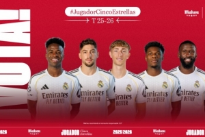 体育资讯3月26日讯 皇马公布了3月份的最佳球员候选,维尼修斯、巴尔韦德、赫伊森、琼阿梅尼和吕迪格在列。