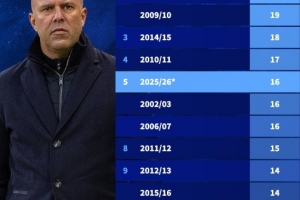 根据德国转会市场的统计数据,新世纪以来,利物浦本赛季的输球场次已经位居球队单赛季输球场次榜第5位。